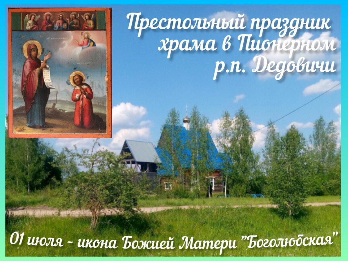 1 июля 2025 года, в прославление Боголюбской иконы Божией Матери, одноименный приход храма поселка Дедовичи приглашает паломников на престольный праздник.
