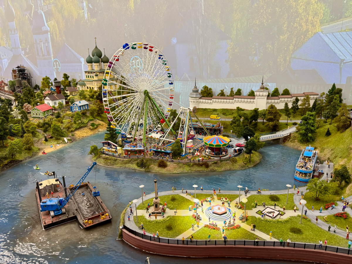 Насмотревшись на красоту Ярославля на шоу-макете "Золотое кольцо", мы направились осматривать его в реальности, и, в первую очередь, пошли искать колесо обозрения, которое так заманчиво выглядело на макете и обещало шикарные виды на город.