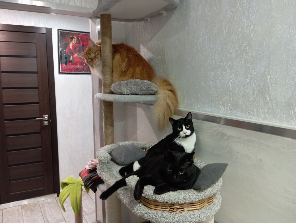 Пытались вовлечь бабушку, но что-то она не захотела играть в табун котов и закрыла для пушистых двери.