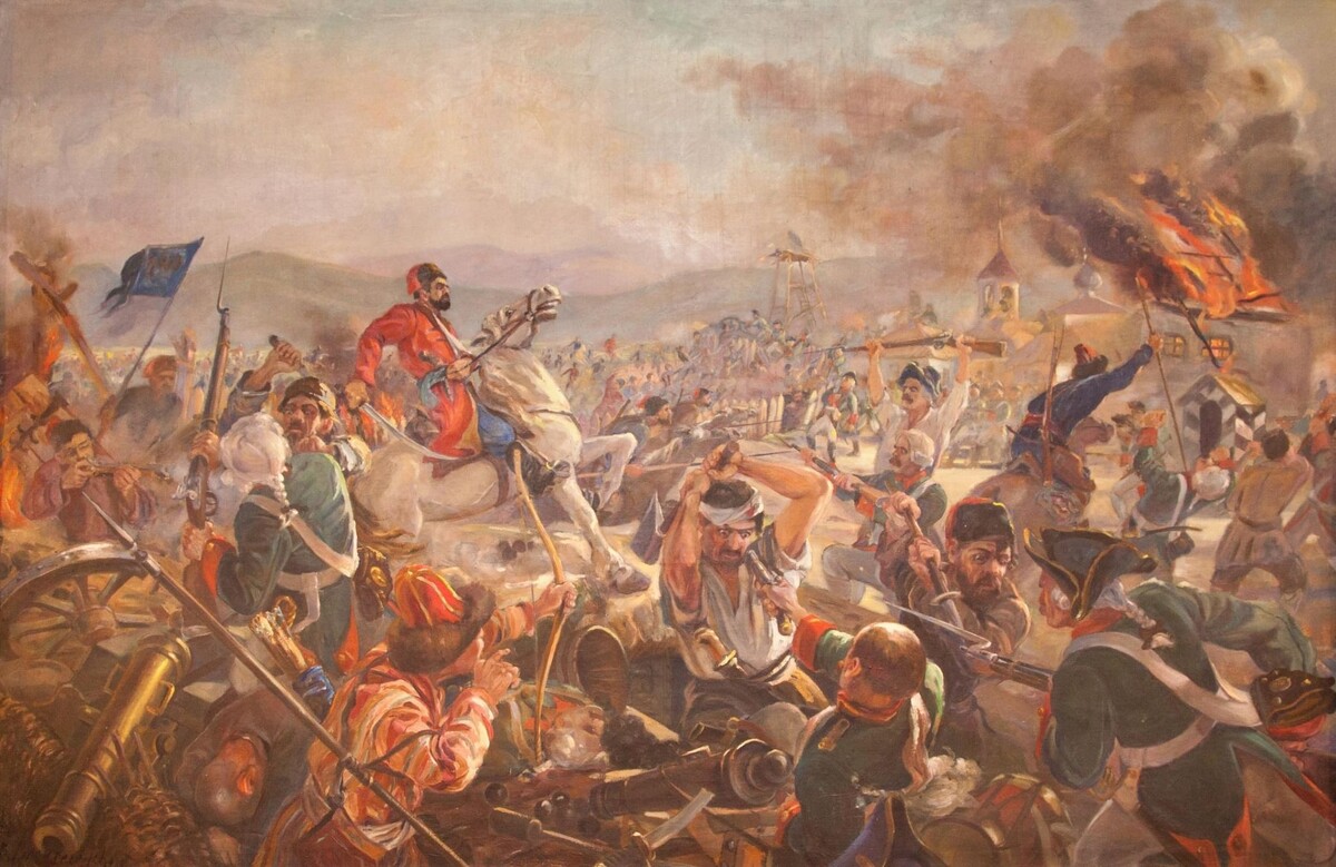 Летом 1774 года разразилось событие, которое едва не перевернуло весь ход российской истории. 23 июля началась кровавая трёхдневная баталия между армией Пугачёва и войсками императрицы. На старте счастье улыбнулось мятежникам, но уже очень скоро фортуна переменила гнев на милость... да только не к ним. Однако давай разложим всё по полочкам. На деле всё стартовало чуть раньше. 23 июня войско Емельяна Пугачёва сумело-таки сокрушить царские силы под Казанью и торжественно вступило в город.