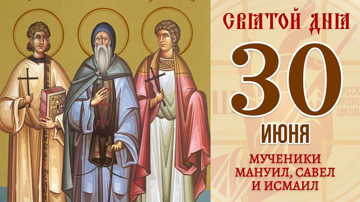 30 июня 2025 года - понедельник, седмица 4-я по Пятидесятнице В этот день Русская Православная Церковь чтит память: — Мучеников Мануила, Савела и Исмаила (362) — Священномученика Аверкия Северовостокова, пресвитера (1918) ------------------------------------------- 💞 Сегодня именины празднуют: Мануил, Савел, Исмаил, Аверкий, Максим, Пелагия Поздравляем всех именинников с днем Ангела! Желаем им крепкого здоровья, духовной радости и Божьего благословения. ------------------------------------------- 🍵 ПОСТ И ТРАПЕЗА 30 июня 2025 г., понедельник, день постный ------------------------------------------- 💠ИСТОРИЧЕСКИЕ СОБЫТИЯ — 30 июня 1736 г. Азов стал частью Российской империи в ходе русско-турецкой войны — 30 июня 1940 г. родился архиепископ Гавриил (Стеблюченко, +20.05.2016), бывший Усть-Каменогорский и Семипалатинский — 30 июня 1952 г. умер епископ Лужский, викарий Санкт-Петербургской епархии Симеон (Бычков) — 30 июня 1994 г. в России создана служба охраны уголовно-ис