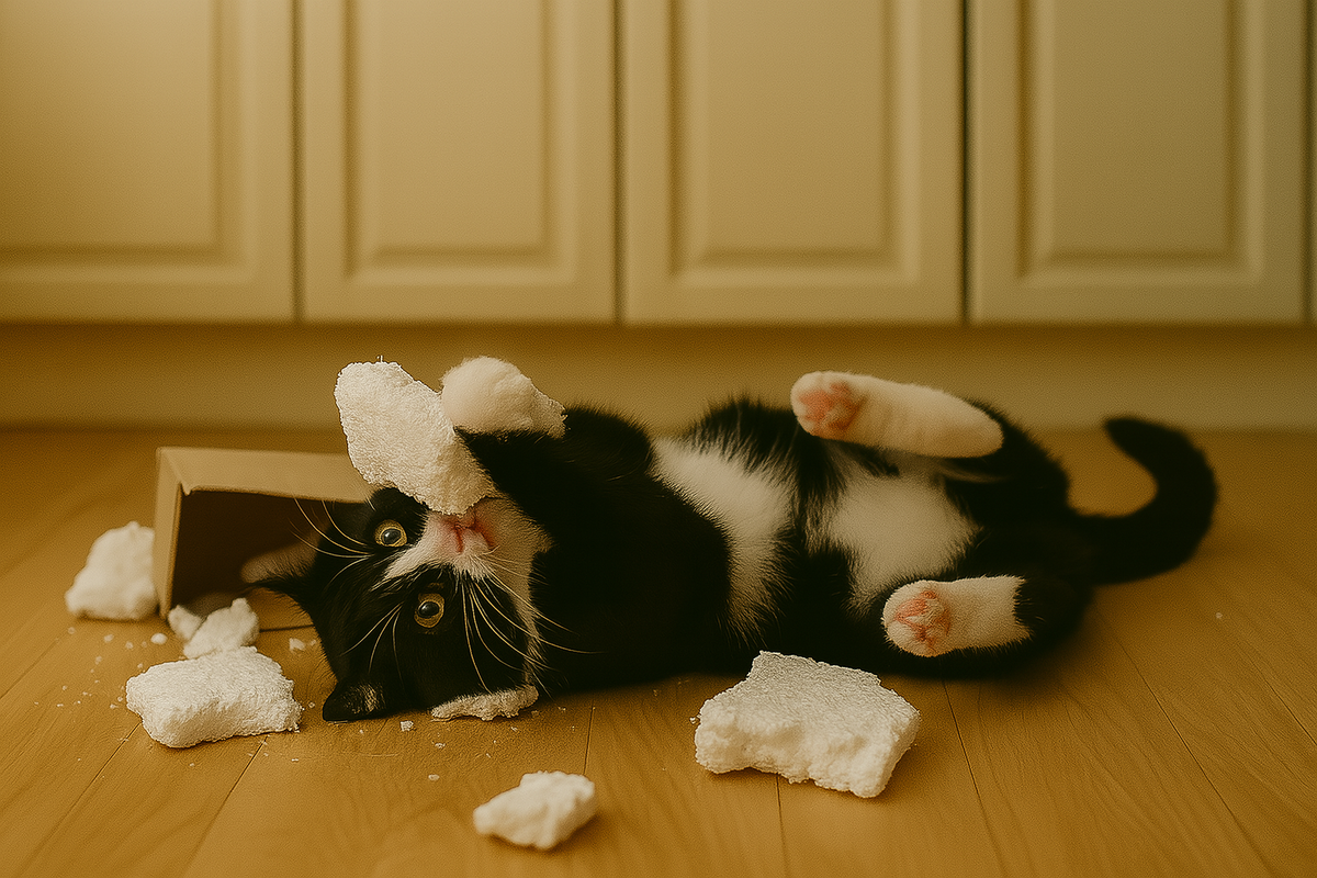Она сидела на кухне в тишине, пока её не нарушил кот. Пиксель выковыривал лапой пузырёк из коробки, разорвал пенопласт на три части и притворился, что он не при чём. Мостик дремал у порога.
