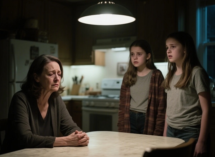 Марина вернулась в восемь. Та же серая усталость на лице, тот же потухший взгляд. Она разулась, прошла на кухню, где за столом, словно трибунал, ее ждали дочери.