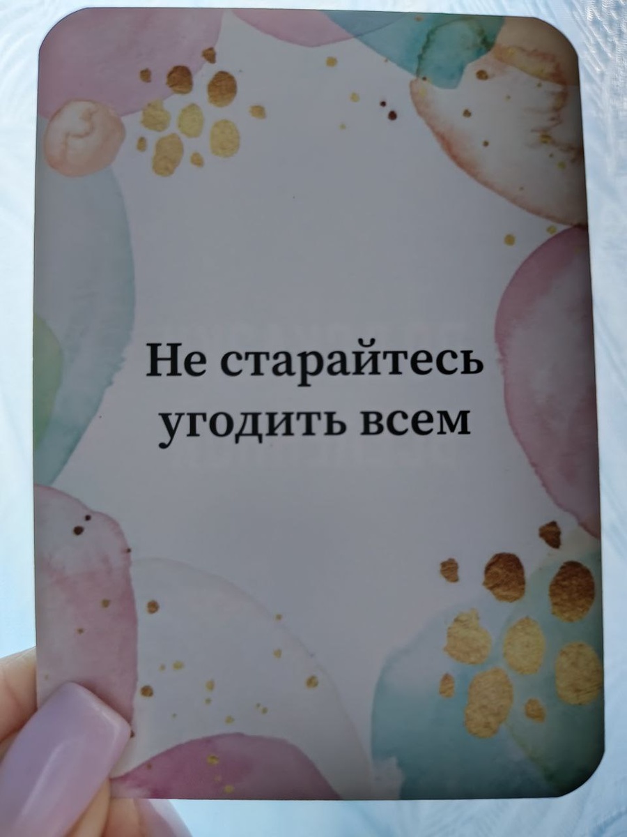 С началом новой недели, дорогие 💃 Как прошли ваши выходные? делитесь 👇 У меня, волшебно. Вы уже знаете. Эта встреча поменяла меня изнутри. И мне захотелось творить, делать и давать 🤲 Сегодня #посланиедня от колоды "Подсказки Вселенной" Не старайтесь угодить всем Великолепное послание и очень важное. Часто встречаю, да и на эфиры приходят люди, которые стараются для кого то во вред себе. 🫠 Запишите это послание на видное место. И каждый раз, когда вы хотите сделать что-то для кого-то, спросите себя "Я этого хочу или надо?" и "Я этого хочу, чтобы быть хорошей или просто хочу, могу, делаю?" Делайте только в удовольствие, не чтобы угодить и быть хорошей. Будьте хорошей, в первую очередь, для себя 🥰 Линую карту получить очень просто. Напишите в комментариях "С доверием" и как по волшебной палочке карта появиться🤲 Погнали 🚀 Люблю❤️ Обнимаю🤗