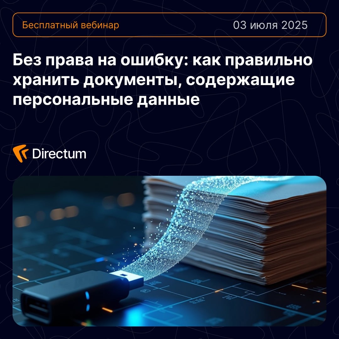 📑Документы, содержащие персональные данные, создаются в самых разных подразделениях — от HR до бухгалтерии. Требования к их хранению и уничтожению и так были непростые, но с 30 мая стали еще строже. Поэтому возникают риски. *3 июля в 11:00 мск* методолог компании Directum расскажет, как взять ситуацию под контроль и выстроить хранение таких документов по всем правилам. *За 1,5 часа вы узнаете:* ● чем отличается обработка персональных данных от хранения документов, которые их содержат; ● где чаще всего возникают документы с ПД и как не упустить их из поля зрения; ● какие нормативные акты регулируют сроки и порядок хранения и уничтожения; ● что требует 152-ФЗ и как убедиться, что вы соблюдаете требования; ● как с помощью Directum организовать безопасное, управляемое и законное долговременное хранение документов с персональными данными. 📌Участие бесплатное, нужно только зарегистрироваться по ссылке.