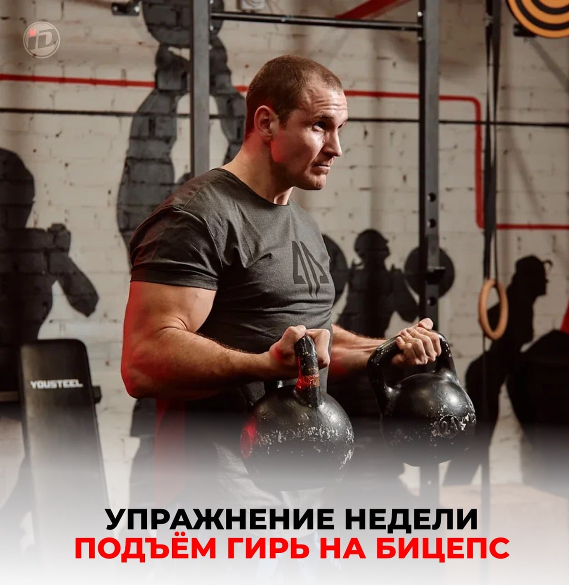 УПРАЖНЕНИЕ НЕДЕЛИ🔥 Подъём гирь на бицепс✅ Гиря отличный снаряд для тренировки всего тела и бицепс тут не исключение. Хоть хват гири и не очень хорош для работы на бицепс по сравнению с гантелями, но гиря в виду своего хвата задействует мышцы очень нетипичным способом