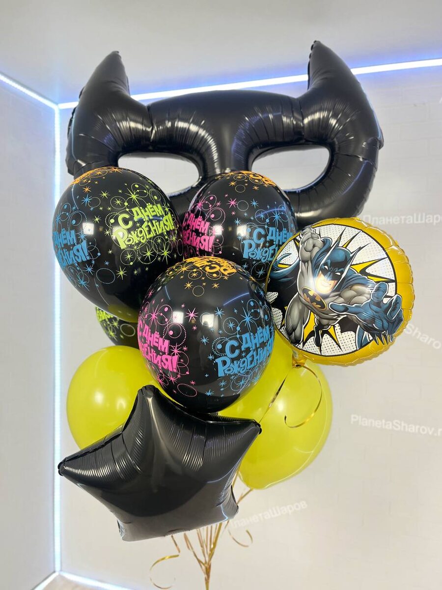 Заказать: https://planetasharov.ru/shop/fontany-iz-gelievyx-sharov/maska-betmena-i-cherno-zheltye-shary/
