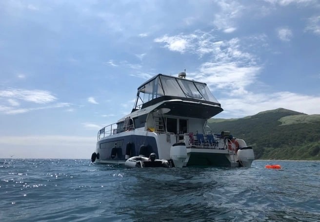 Катамаран «Мерлион» с туристами на борту загорелся в районе острова Шкота 29 июня около 13:00