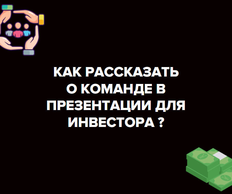 В презентации для инвестора информация о команде является ключевым элементом, поскольку она демонстрирует, что у вас есть опыт и способности для успешного выполнения плана.