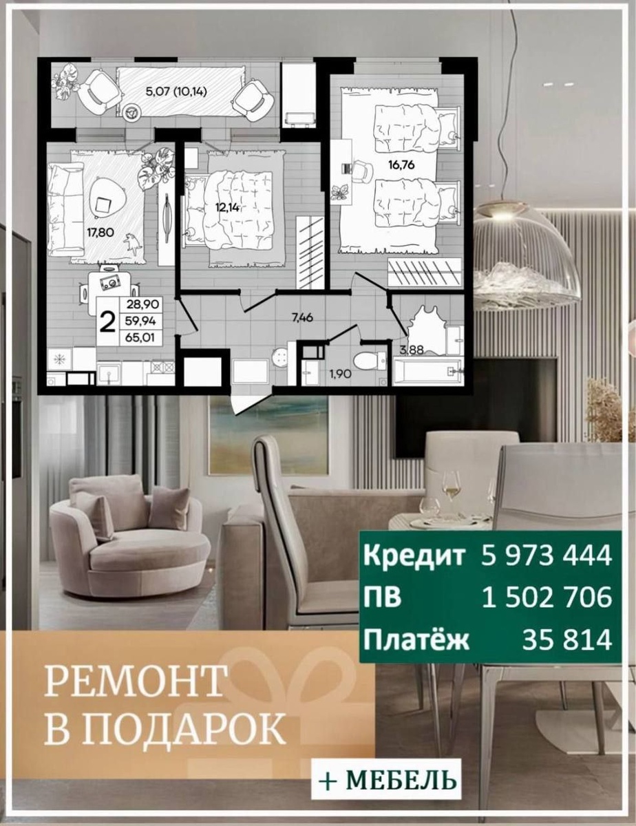 ΠΊΠΎΠΌΠ½Π°ΡΠ½ΡΠ΅ ΠΊΠ²Π°ΡΡΠΈΡΡ Ρ ΡΠ΅ΠΌΠΎΠ½ΡΠΎΠΌ Π Π΅ΡΡ, ΠΏΡΠΈ ΠΏΠΎΠΊΡΠΏΠΊΠ΅ Π΄Π²ΡΡ