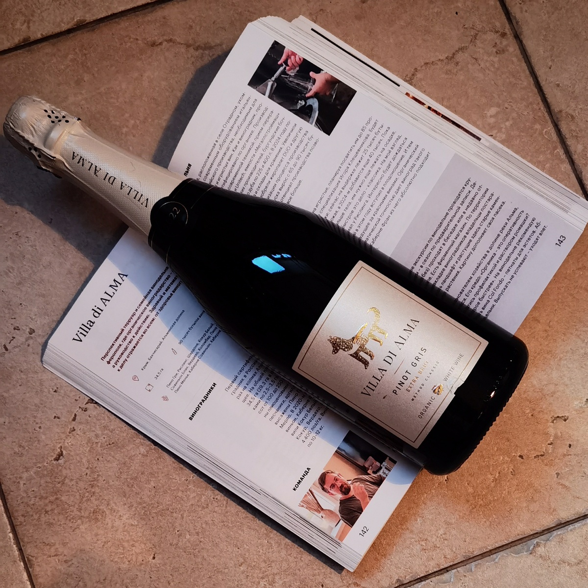 Июнь 2025 года. Закончился первый месяц лета и пришло время для обзора очередного вина в рубрике «Вино от Дзена» (напомню, всего будет 12, по числу месяцев, что за рубрика такая, можно прочитать вот здесь, а в конце обзора ссылки на предыдущие 5 вин). В этом месяце вино выбирал сам, а подтолкнул меня к выбору недавний обзор тихого Шардоне на канале @Вадим и винный погребОК. Вино и мясо. Независимый блогер. К органическим винам я отношусь настороженно, к сожалению в большинстве случаев в погоне за желанием создать что-то чистое, исключительно натуральное и индивидуальное, виноделы забывают о главном - вино должно в первую очередь доставлять удовольствие, а не вызывать недоумение. Последним приятным исключением стали крымские вина от AYA Organic Wine & Vineyards, об игристых винах Villa Di Alma (других линеек) слышал и читал только положительные отзывы, поэтому увидев на полке винотеки «ВиноАгент» последнюю бутылку редкого для розницы вина Pinot Gris Extra Brut решил взять на пробу. V