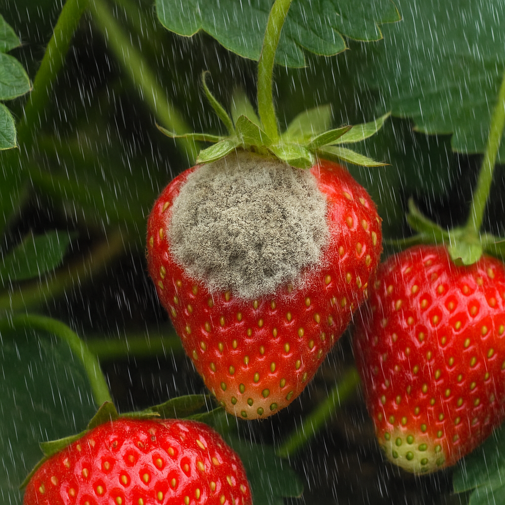 Когда клубника начинает наливаться, а на смену солнцу приходят затяжные дожди — бездействовать нельзя. Грибковые заболевания в такую погоду распространяются моментально. Если вовремя не вмешаться, можно лишиться и урожая, и самих кустов. При переувлажнении почвы ягоды становятся крупными, но водянистыми и кислыми. Такое происходит потому, что растения впитывают слишком много влаги. Радует только размер, но вкуса и пользы — минимум. Кроме того, постоянная влага создаёт идеальные условия для грибковых инфекций: серая гниль, мучнистая роса, антракноз — всё это может появиться буквально за пару дней. Чтобы сохранить урожай: Для профилактики в период плодоношения отлично подходит: Фитоспорин-М — 2 ст. ложки на 10 л воды. Опрыскиваем раз в неделю кусты и почву. Признаки серой гнили: Что делать: Используйте смесь: Для укрепления почвы полезно внести: Если заражение сильное и урожай не спасти — переходите к фунгицидам: ⚠️ В этом случае плоды уже нельзя употреблять в пищу, но кусты вы сможете