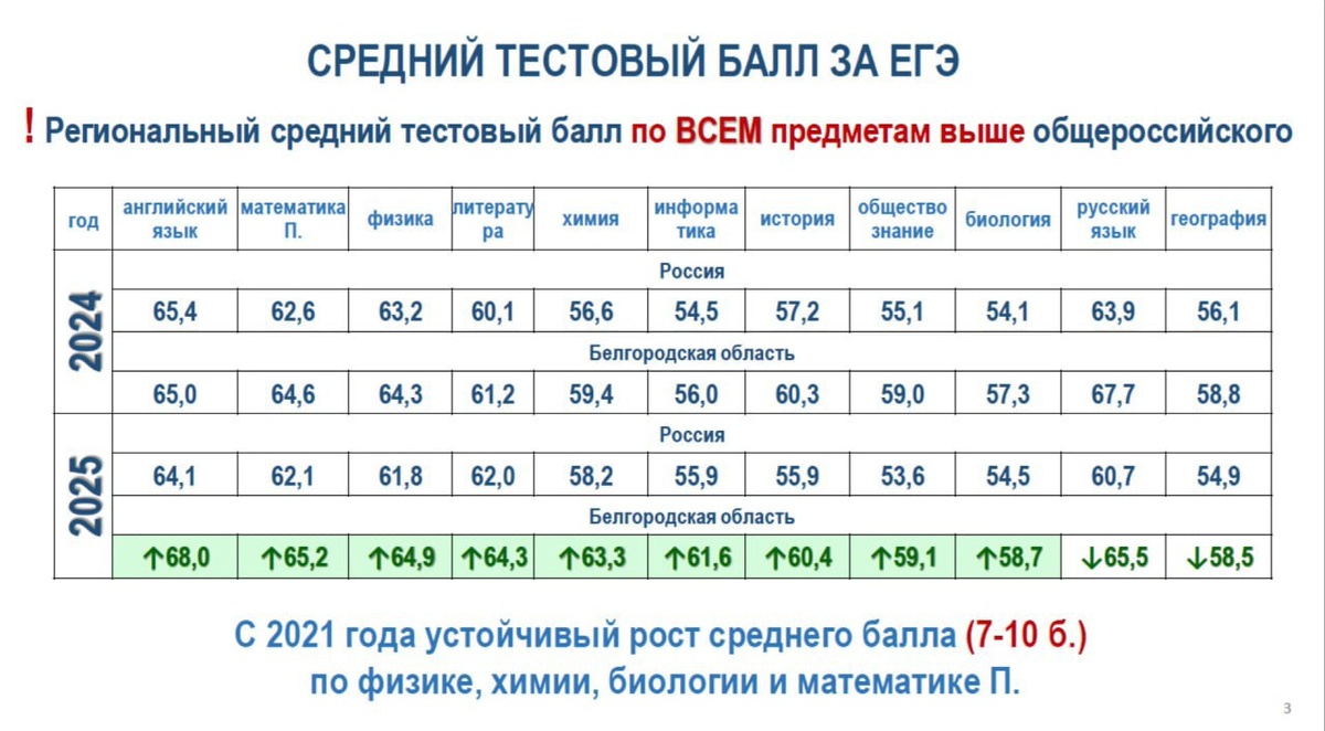 Средний балл по ЕГЭ в Белгородской области оказался выше общероссийского