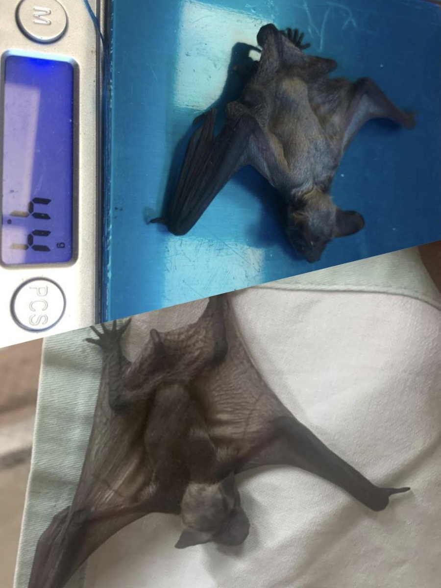 Под крышей дачного дома у мамы поселилась летучая мышь. Уже второй год из ее гнезда выпадают детёныши. В прошлом году спасти малыша не удалось, он был слишком мал, а ночи холодные. В итоге мышь погиб. В этом году выпавший малыш был уже взрослее, но летучая мать его не смогла бы забрать, т.к. он уже был гораздо больше того, кого она бы могла унести на себе обратно в гнездо. Малыша "бросили". Так моя мама взяла на себя функцию спасти и вырастить подкидыша. Как умеет и может.