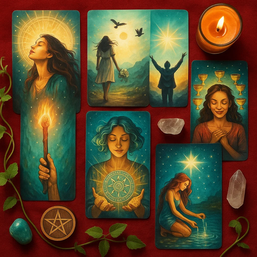 Этот расклад — о тех трансформациях, которые уже идут по вашей жизни. О том, исполнится ли то, что долго было в ожидании — будь то любовь, здоровье, примирение, деньги, вдохновение. Здесь — не сухая формулировка, а живой поток символов, как будто вы говорите с самой Вселенной, глядя ей в глаза.