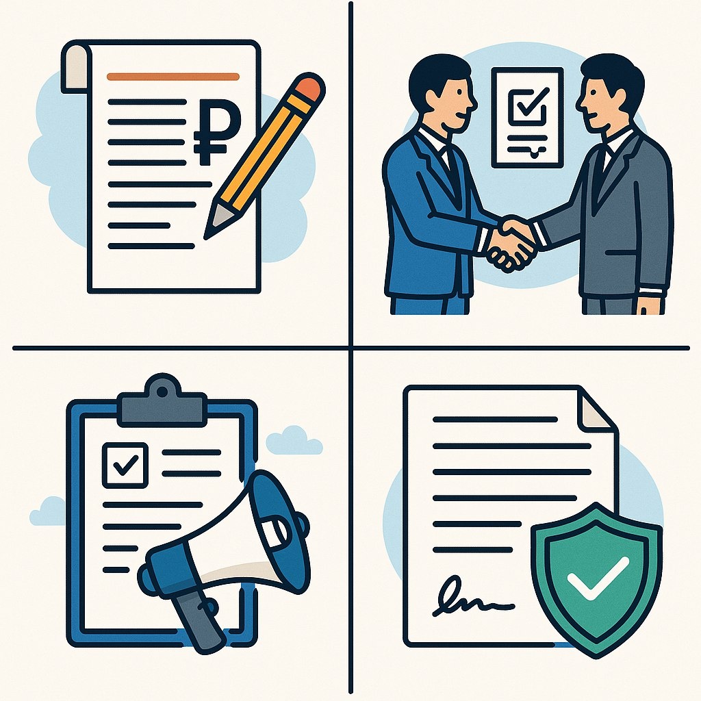 Идея о штрафах в 150–200% от контракта — миф. На практике, если цена в аукционе упала более чем на 25% от НМЦК, обеспечение исполнения контракта повышается в 1,5 раза, но не более 10% от цены контракта, а фактические пени и штрафы исчисляются по ГК РФ и 44-ФЗ в гораздо скромных пределах.