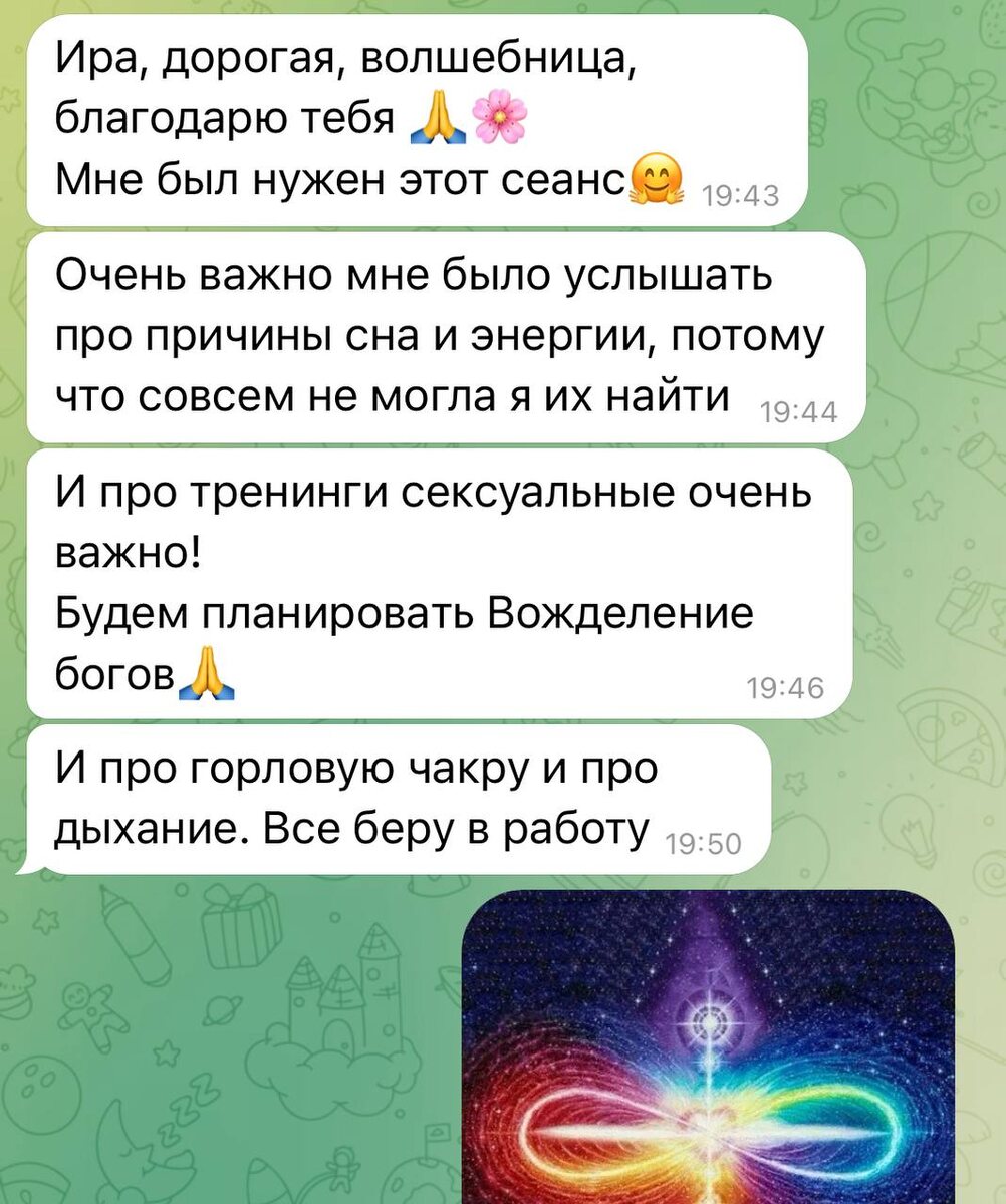 Доброе утро ☀️ мои дорогие, сеансы нужны иногда только для того, что бы сделать полное техобслуживание чакральной системы и ответить на вопросы. Дальше жить не гадая что да как, почему и зачем. Есть ответ и есть решение. Да и когда ты наполнена энергетически, чиста как утренняя роса готова проживать свою новую жизнь со вкусом любви и счастья.