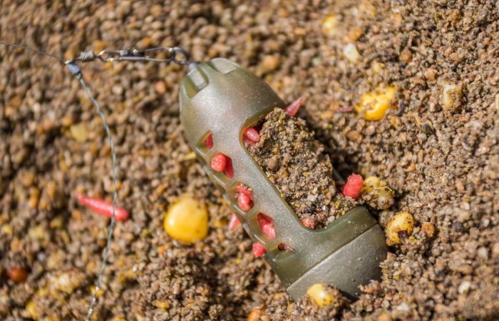 Одной из самых необычных вариаций фидерных кормушек является закрытый контейнер. Визуально он напоминает герметичную капсулу с перфорацией - мелкими отверстиями, расположенными по всей поверхности. Главное назначение такой конструкции - доставка живых компонентов прикормки, таких как мотыль, опарыш или червь, непосредственно в зону ловли. Это особенно актуально в ситуациях, когда требуется быстро восстановить активность рыбы на точке. Например, если из-за резкого изменения погоды или ошибок в прикармливании стая покинула зону заброса.