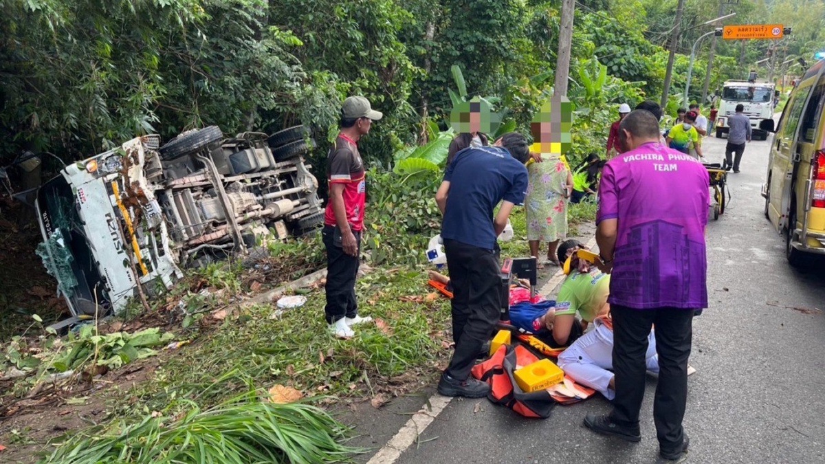 Грузовик с рабочими вылетел с дороги в Кату, пострадали пять женщин Пять трудовых мигранток были госпитализированы на Пхукете в воскресенье, 29 июня, после того, как перевозивший их грузовик вылетел с проезжей части и рухнул в придорожный кювет. Авария произошла около 7:15 в Кату. Сообщение об инциденте опубликовали спасатели Kusoldharm Phuket Foundation, оказавшие пострадавшим первую помощь на месте событий и доставившие их в больницу Vachira Phuket. Женщины получили легкие травмы. Как говорится в публикации Kusoldharm, всего в кузове грузовика Isuzu находились 19 человек. Управлявший автомобилем водитель был гражданином Таиланда. Еще одна авария с участием сразу двух грузовиков произошла 29 июня в тоннеле Darasamuth Underpass (у Central Festival). Там во второй половине дня столкнулись два следовавших друг за другом грузовика с прицепами. Водитель задней машины оказался заблокирован в кабине, так что спасателям пришлось применить специнструмент, чтобы достать его из-за руля. Муж