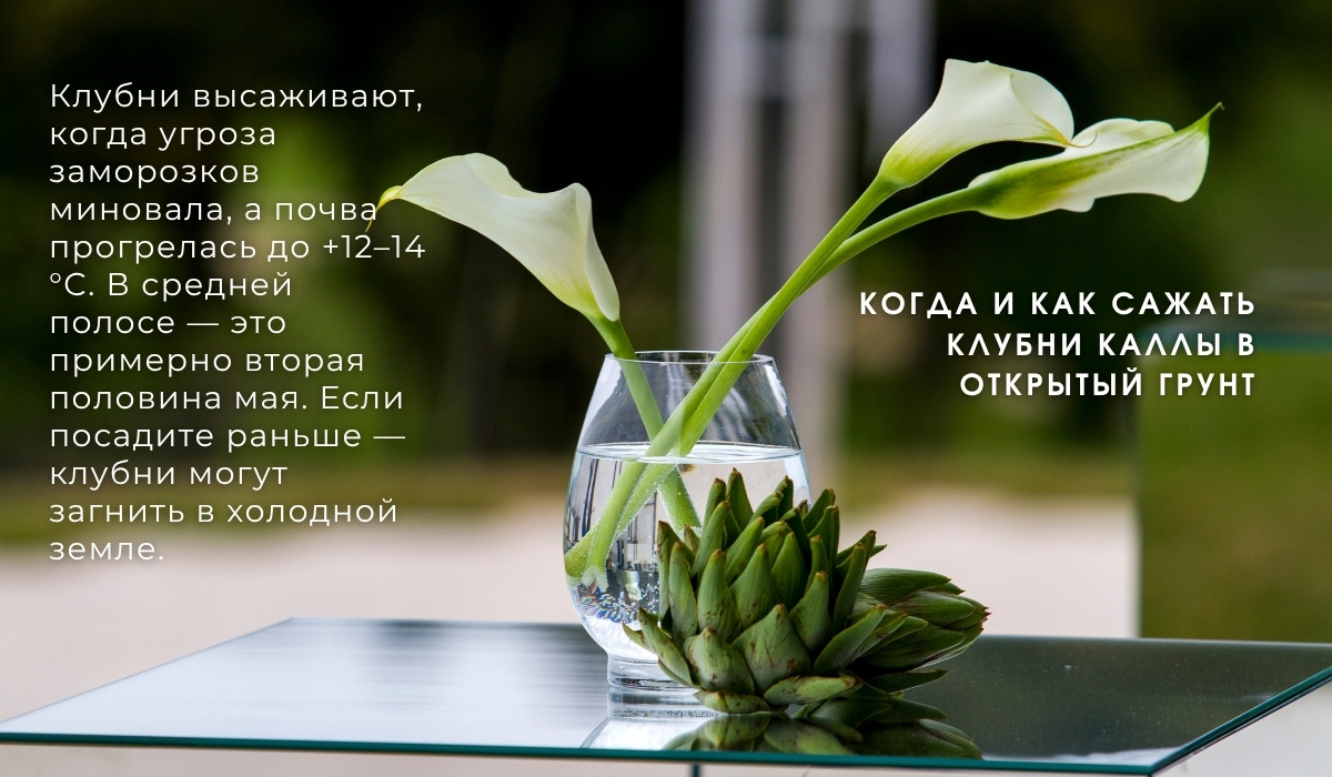 🎯Каллы — не только изысканные и скульптурные цветы, но и настоящие жемчужины цветников. Особенно популярны садовые сорта каллы (Zantedeschia) с яркими воронкообразными цветками: от солнечно-жёлтых до пурпурных и кремово-белых. Но чтобы они порадовали вас цветением, важно правильно посадить их в открытый грунт. 🌱 Когда сажать? Клубни высаживают, когда угроза заморозков миновала, а почва прогрелась до +12–14 °C. В средней полосе — это примерно вторая половина мая. Если посадите раньше — клубни могут загнить в холодной земле. 📍 Выбор места Каллы любят солнечные или слегка притенённые участки, защищённые от сильного ветра. Идеально — утреннее солнце и лёгкая полутень во второй половине дня. 🛠 Как сажать? 💡 Совет: для быстрого старта можно предварительно прорастить клубни дома в горшках, а пересадить в сад уже с активными ростками — это ускорит цветение на 2–3 недели. 🌸 Когда ждать цветения? При посадке в грунт в мае, первые цветы появятся в июле и будут радовать вас до конца августа