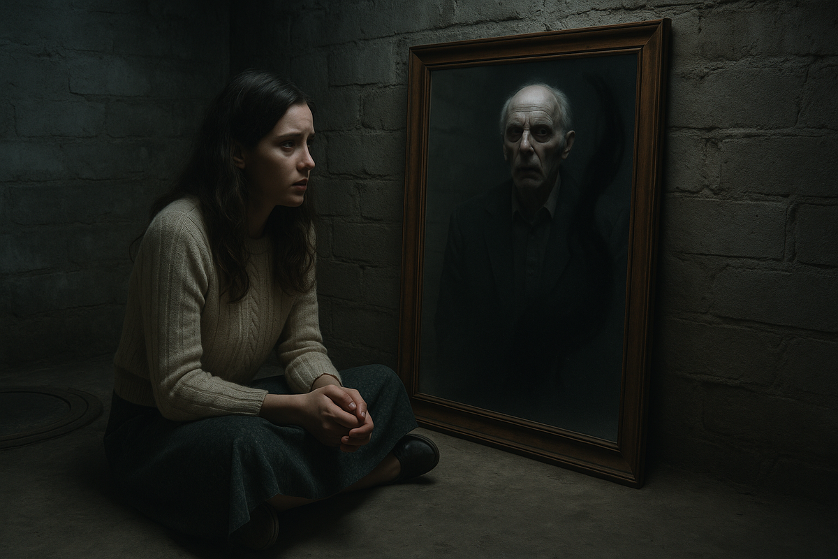 Там была комната. Пустая. Лишь на стене висело зеркало. В нём — она и... Виктор Петрович. Но не живой. Лицо его было искажено, глаза без зрачков, рот открыт, будто он кричал без звука.