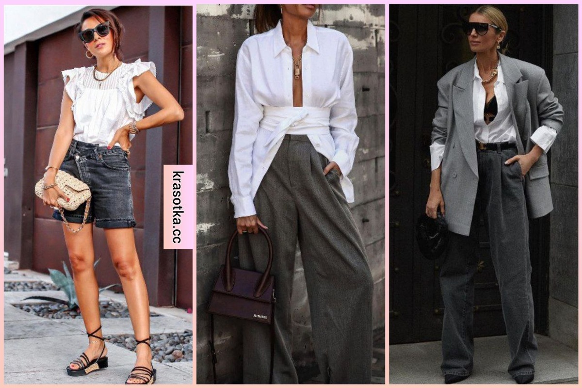 Серый и белый – классические цвета базового гардероба. Часто их считают скучными и подходящими только для формальных ситуаций. Однако эти оттенки прекрасно сочетаются и в летних образах , создавая стильные и модные луки. Пиджак оверсайз в сером цвете и белая объемная рубашка позволят собрать модный и современный образ. В качестве низа можно добавить черные или серые джинсы, также подходят и строгие брюки. Читайте также: Как носить длинный пиджак в [year] году: 60+ идей для создания привлекательных образов Летний и легкий сет на каждый день – это белая блузка без рукавов и джинсовые шорты в черном цвете. К такому образу можно добавить плетеные сумочки и удобные сандалии или босоножки на танкетке. Костюм серого цвета как в спортивном, так и в классическом исполнении будет для вас палочкой-выручалочкой летом. Добавьте к нему майку и кеды в белом цвете и получите образ, который отличается практичностью и стилем. Привлекательная кофта в укороченном фасоне и в сером цвете отлично дополнит об