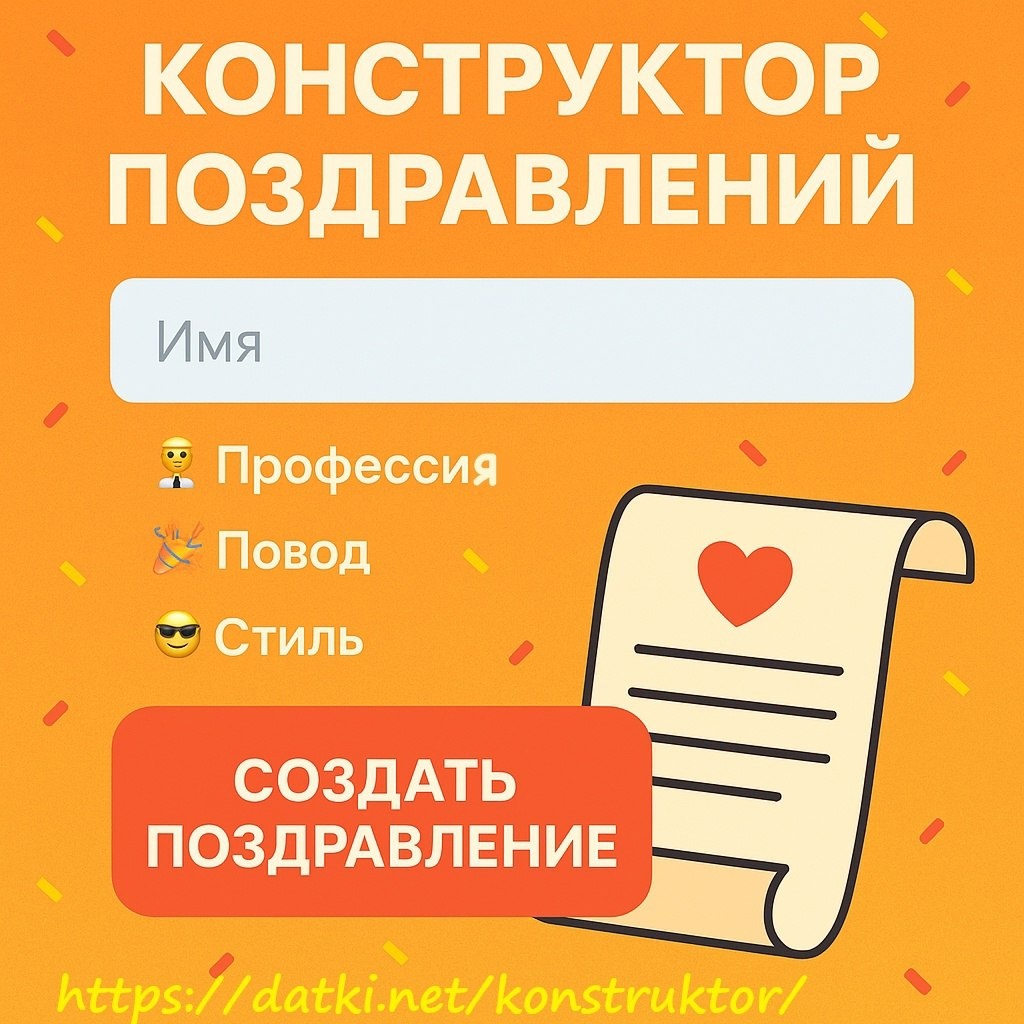 🎉У нас отличная новость! На сайте Датки https://datki.net/konstruktor/ появился Конструктор поздравлений — умный инструмент, который с лёгкостью подберёт тёплые слова именно для вашего случая! 💯