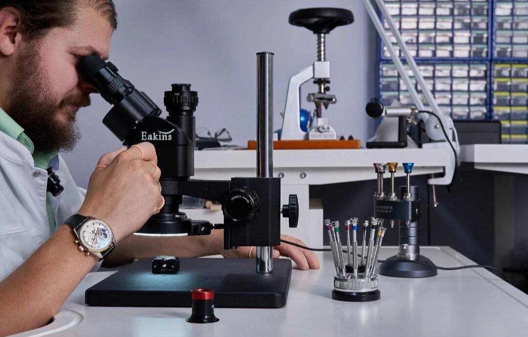 Диагностика. Мастер проверяет точность хода, тщательно осматривает часы, внимательно проверяет герметичность корпуса и степень износа деталей.