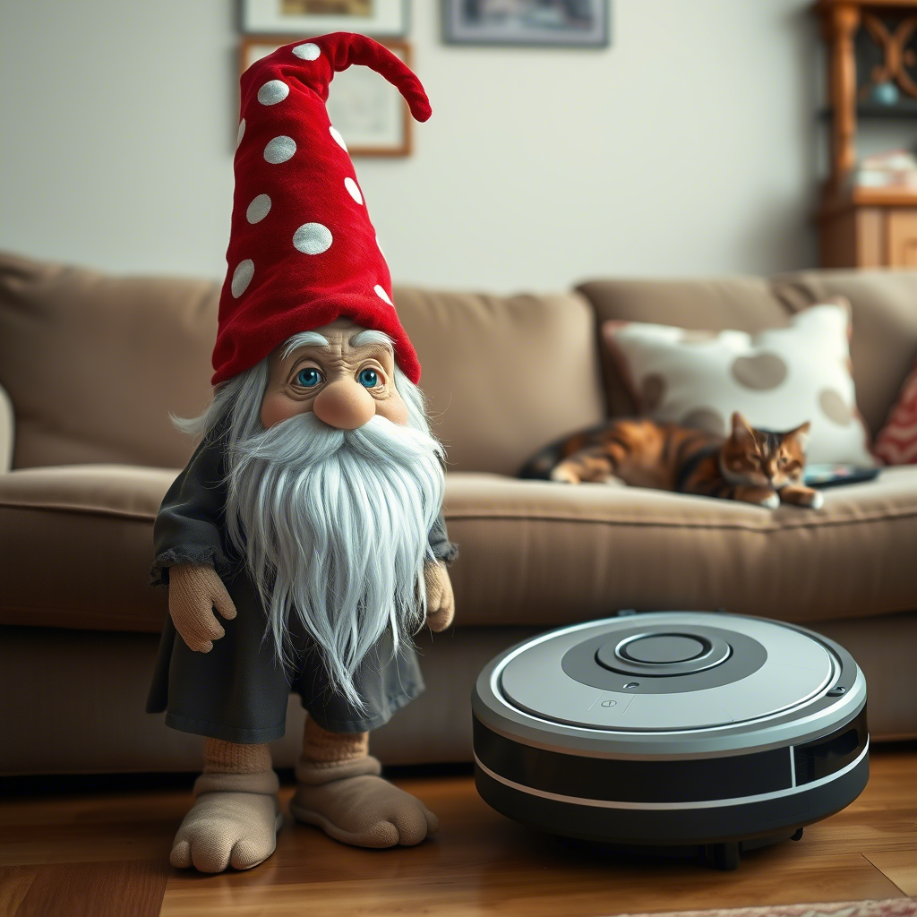 Жил-был в уютной квартире, где всегда уютно пахло борщом и книгами, домовой по имени Борис Пылесосович. Он был старинного закала, питался крошками от печенья, собирал пылинки как сокровища, а на ночь надевал тапочки из мешковины, чтобы тише передвигаться по квартире и не будить домочадцев. И вот однажды, в один прекрасный день, его спокойная жизнь была нарушена. С грохотом, свистом и звуком, похожим на старт космического корабля, на пороге комнаты появилось нечто круглое, металлическое и самоходное — робот-пылесос по имени Циклон-3000. — Приветствую, — сказал он голосом, похожим на смесь диктора НТВ и Яндекс.Алисы. — Я пришёл навести порядок. Борис Пылесосович поднял бровь (ту, что ещё не выпала от возраста) и строго произнёс: — Это моя территория. Кто ты такой? — Я — инновация. Развитие. Прогресс. А вы, если не ошибаюсь, пережиток прошлого. — Пережиток? Да я тут ещё до того жил, когда телевизоры показывали только одну программу, и ту с помехами! Циклон-3000 сделал паузу, просканировал