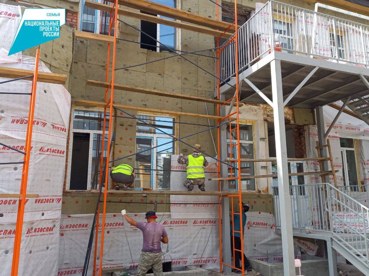 ➡️Строители утеплили фасад здания, смонтировали систему канализации, обновили полы, заменили окна и другое. Завершаются работы по обновлению кровли, лестницы у главного входа, также ведется внутренняя отделка помещений, монтаж систем электро-, водо-, теплоснабжения.