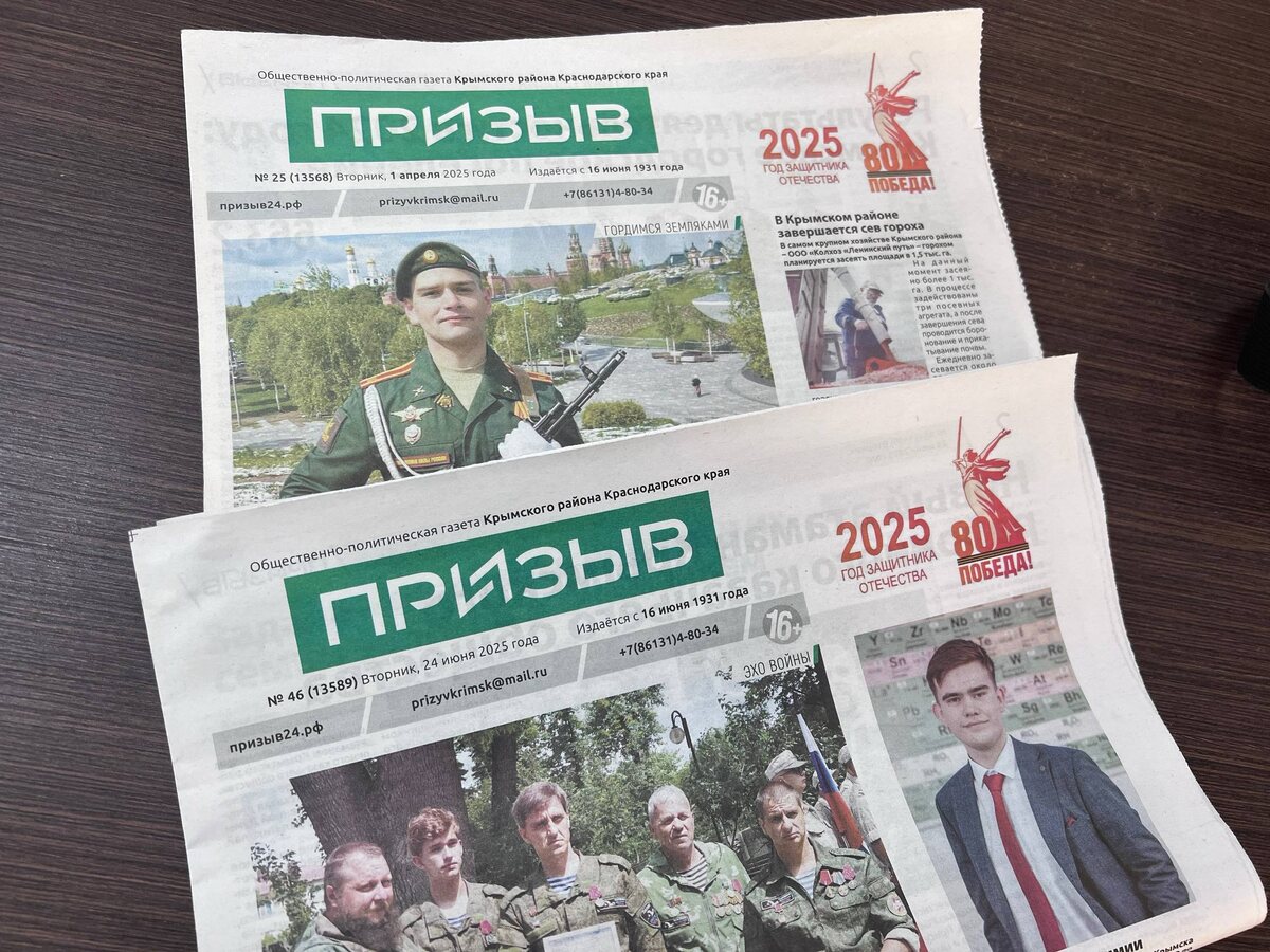 Подписка в подарок Депутаты Законодательного Собрания Краснодарского края Андрей Горбань и Алексей Сафронов подарили подписку на районную газету «Призыв» ветеранам Отечественной войны, членам Совета ветеранов и инвалидам. Благодаря помощи депутатов наши уважаемые ветераны будут получать газету, чтобы быть в курсе всех событий, которые происходят в Крымском районе.