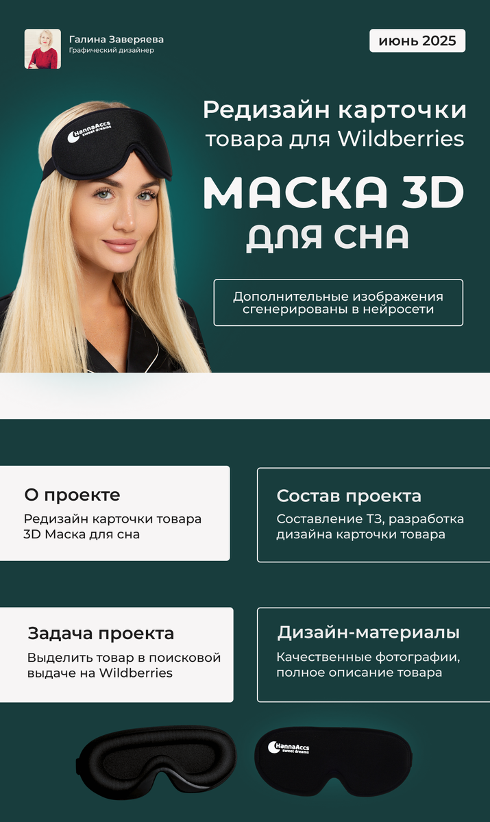 Проделанная работа по созданию дизайна карточки товара 3D Маска для сна