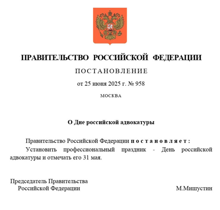 Забавно всё-таки происходят у нас события в недрах механизмов исполнительной власти. Закон об адвокатуре, как к нему ни относись, состоялся почти четверть века назад в эту дату - вроде и принять постановление можно было раньше.