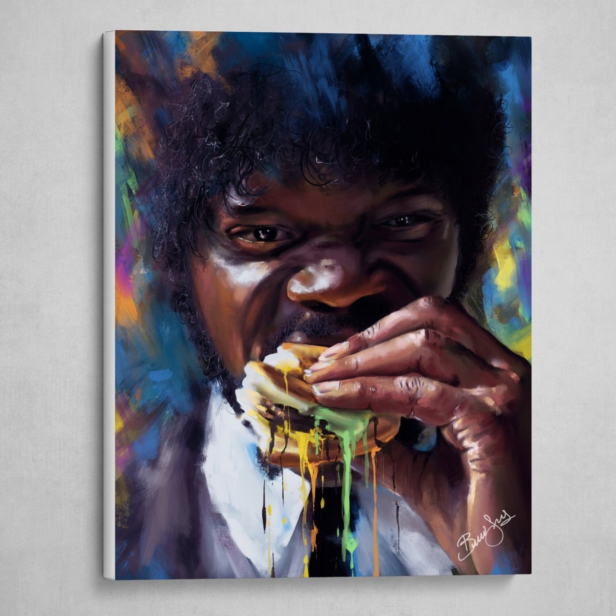 «Портрет Жюля Криминальное чтиво» Взгляд Жюля из «Криминального чтива» как момент пикового напряжения и внутренней силы. На этом портрете его глаза полны решимости и переживаний, а каждое движение наполнено огромным смыслом. Художник мастерски передает эмоции через его выражение лица и напряженную позу. Каждая капля соуса, стекающая с его еды, становится символом разрывающейся энергии, которая внутри этого персонажа. Вся палитра цвета создает ощущение бурного, незримого напряжения, наполненного яркими и резкими контрастами, что превращает картину в яркий момент застывшего времени. ⚡️🍔🔪 Стили: Гиперреализм, экспрессионизм, поп-арт, современная живопись. Автор работы: Герман Берналес, Буэнос-Айрес, Аргентина 🇦🇷 🤍 47ART — подписаться #арт #картина #искусство #современноеискусство #картинавинтерьер #интерьернаякартина #декор #декордлядома #декордома #декоринтерьера #интерьер #цифроваяживопись #живопись #галерея