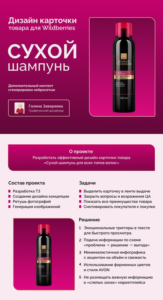 Дизайн карточки для товара «Сухой шампунь для всех типов волос»