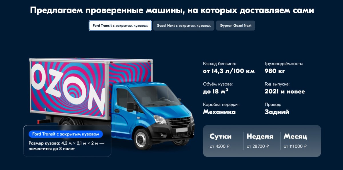 Ozon запустил сервис аренды машин для бизнеса «Ozon Напрокат