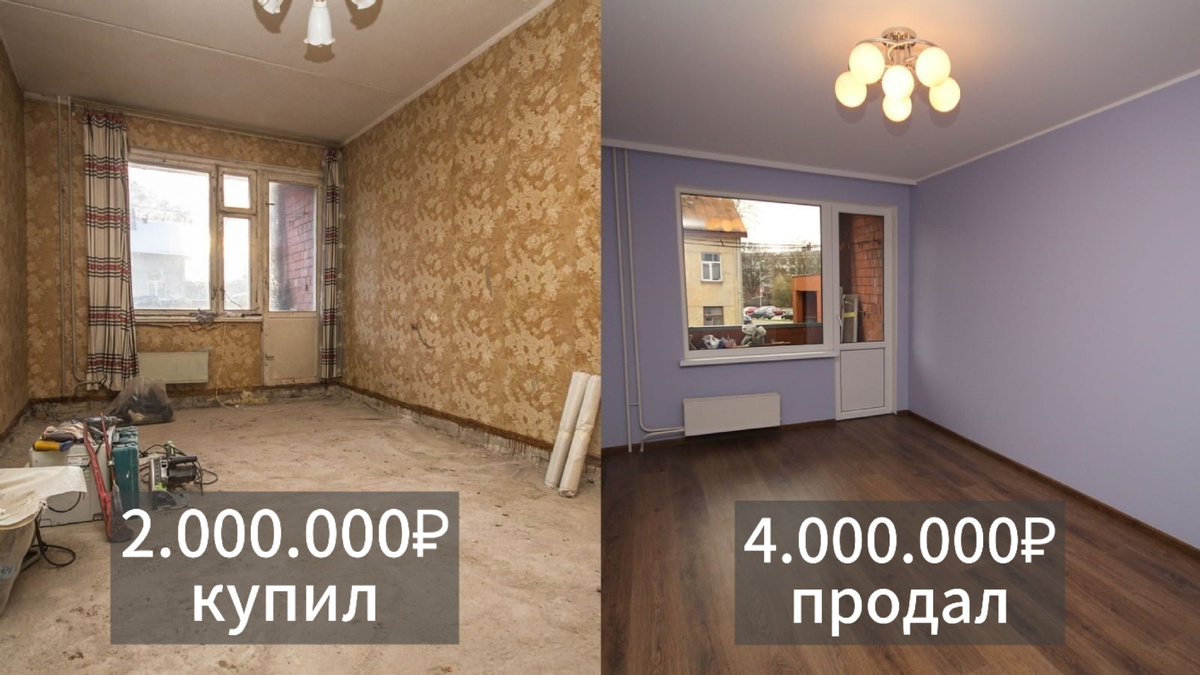 1) Квартира за 3 млн → продажа за 6 млн (вложения: 1,2 млн в ремонт, прибыль — 1,55 млн чистыми за 3,5 месяца).