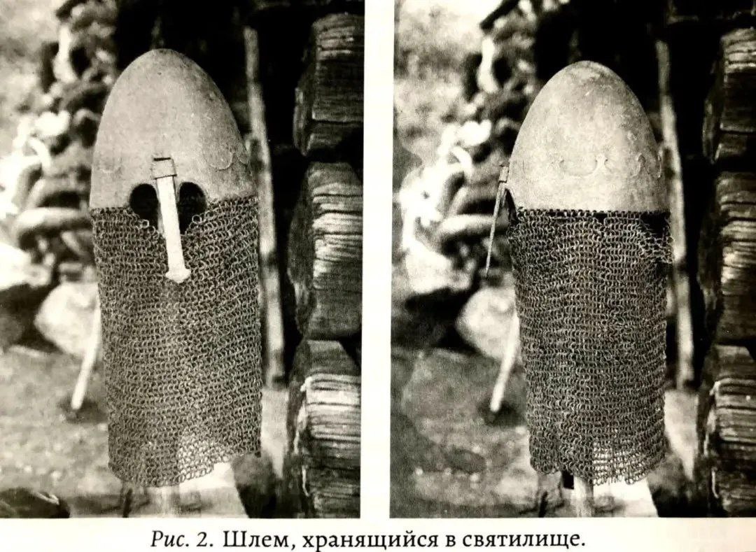 Одна из последних фотографий шлема Осбагатара хранившегося на протяжении многих веков в святилище Реком, перед передачей его в фонды