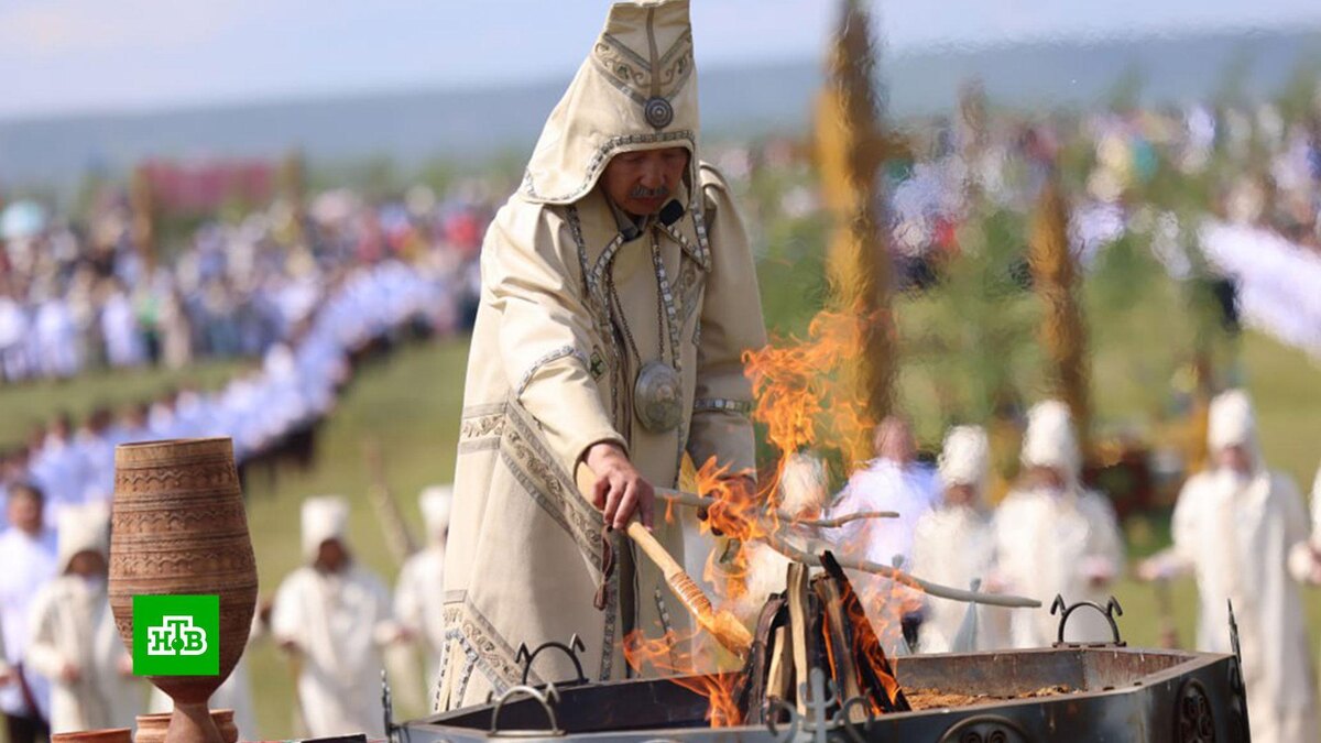 [ Смотреть видео на сайте НТВ ] В Якутии широко отметили праздник лета. Его еще называют местным Новым годом. Площадки посетили более двухсот тысяч гостей из российских регионов и других стран. Программа объединила национальный спорт и культуру. Участники состязались в конных скачках, стрельбе из лука, вольной борьбе. Тысячи гостей исполнили традиционный круговой танец, который символизирует единство всех народов республики. А шаманы по традиции провели ритуалы на привлечение удачи. Всего работали больше ста площадок, в том числе с национальными угощениями. В этом году торжества посвятили и годовщине Победы в Великой Отечественной войне. [ Смотреть видео на сайте НТВ ]