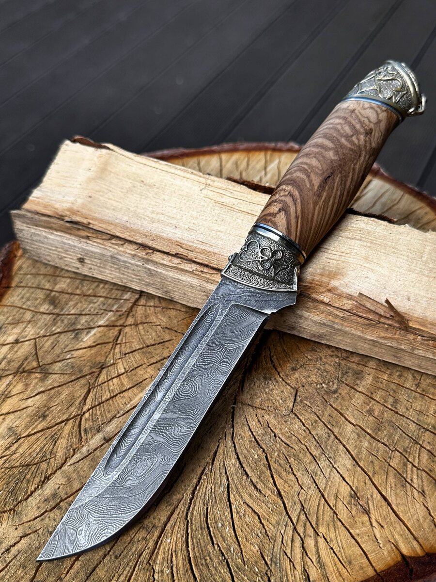Нож Боец из дамасской стали (крученка, 950 слоев, твёрдость HRC 62), рукоять дерево зебрано и мельхиор. Дамасская сталь имеет агрессивный рез и хорошо держит заточку. Ножны в комплекте. Цена по акции: 8300 руб. Обычная цена 10500 руб. В наличии на момент публикации. Можем изготовить формованные ножны из кожи растительного дубления (+ 8000 руб.) Для заказа писать на @Nazarklinokbot или по тел +79101343831, WhatsApp
