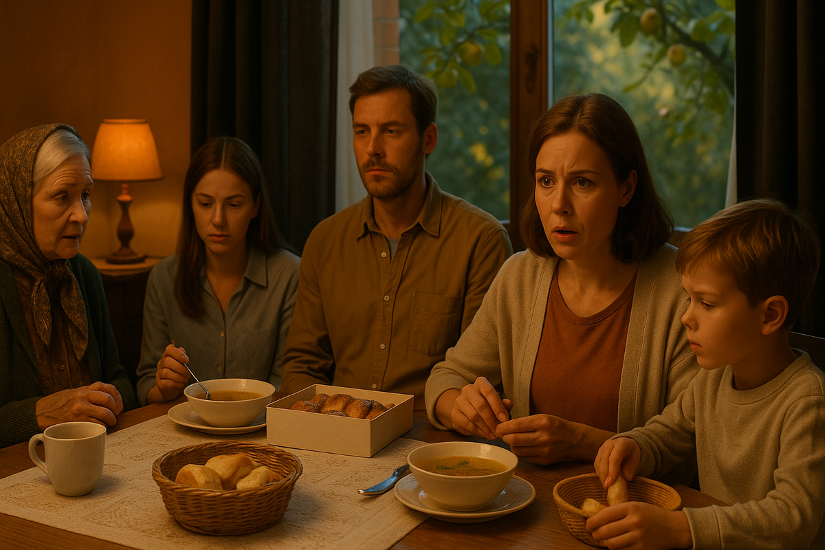 Вечер выдался на редкость томный и тёплый, каким он бывает только в сентябре, — когда листья ещё густо висят на старой яблоне у окна, но уже по ночам стелется прохладная изморозь, и по дому расходится странная тихая суета. Именно в такие вечера мы собирались всей семьёй: моя мама Людмила, тихая и маленькая, вечно кутающаяся в платок; мой сын Пётр — высокий, чуть небрежный, он всегда приходит с коробкой пирожных; дочь Вика, нервная с недавних пор, да ещё и с сыном своим, Кирюшкой-шалунишкой…