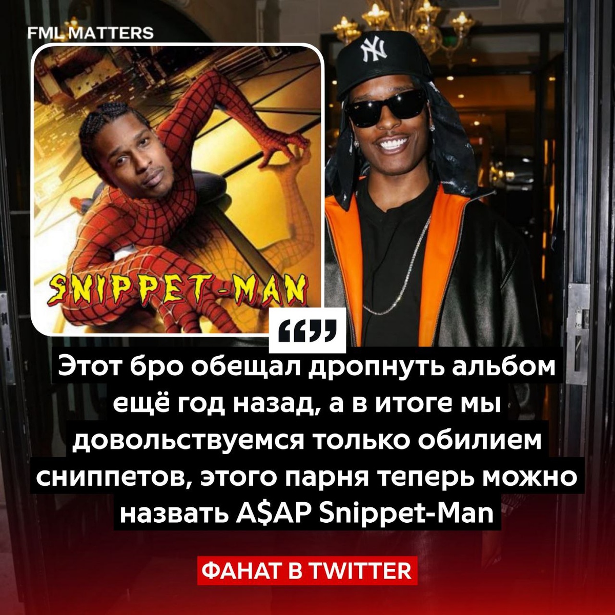🔥 ТЕПЕРЬ ЭТОГО ПАРНЯ НАЗЫВАЮТ SNIPPET-MAN, — ПОШУТИЛ ФАНАТ О A$AP ROCKY