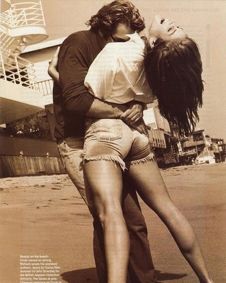 Нередко супруги – да, они были женаты на протяжении 4 лет – предпочитали парные наряды. Так, многие поклонники пары до сих пор вспоминают стиль «Casual»: простые коричневые кожаные куртки, джемпер, водолазка, классического кроя джинсы на Гире и простая мини-юбка на Кроуфорд. Вроде бы все так просто, но элегантно. Сразу чувствуется, что перед нами самая настоящая пара.