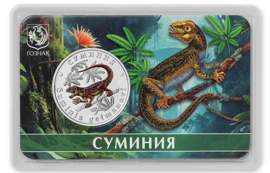 Удивительный факт: червонцев у нас в стране как бы нет, но они как бы есть. В конце июня ММД отчеканил новинку с динозавром. На самом деле, это четвертый жетон серии «Исчезнувшие животные». Новый экземпляр посвящен суминиям — редкому виду животных, исчезнувших много веков назад. Это представители отряда дицинодонтов, жившие около 257–252 миллионов лет назад, в позднем пермском периоде. Суминии были небольшими травоядными животными размером примерно с кошку, с длинными ногами и гибким телом. Их отличительной особенностью является наличие длинных когтей на передних лапах, которые могли использоваться для копания или лазанья по деревьям. Эти животные обитали на территории современной России, в частности, в районе реки Северная Двина, где были найдены первые окаменелые останки. Название «суминия» происходит от названия местности, где впервые обнаружили их ископаемые остатки — Суминский район Архангельской области. Суминии считаются одними из первых известных древесных растительноядных позв