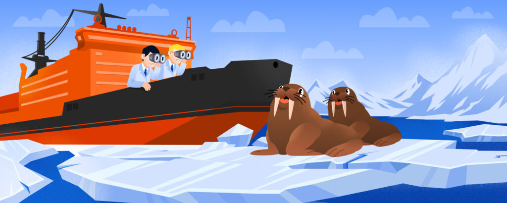 Первый экологический мониторинг на арктическом шельфе мы провели в Баренцевом море в 2010 году перед началом добычи на Приразломном месторождении. Тогда специалисты собрали данные о состоянии воды, воздуха, донных отложений и микроорганизмов — на них мы ориентируемся и сегодня. Позднее в программу мониторинга вошли еще два направления: изучение популяции атлантического моржа и сохранение биологического разнообразия Арктики.