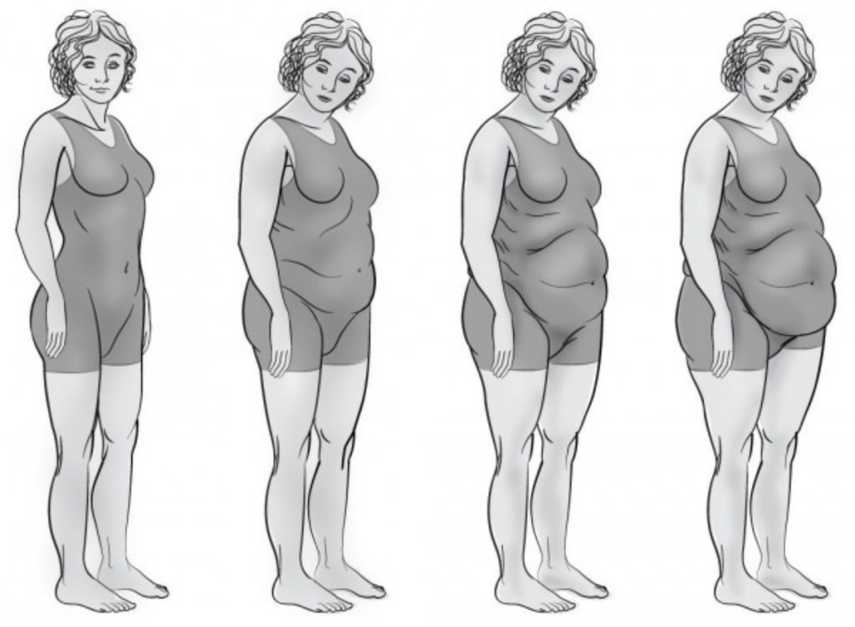 ✅ Накопление жира, особенно в области живота.