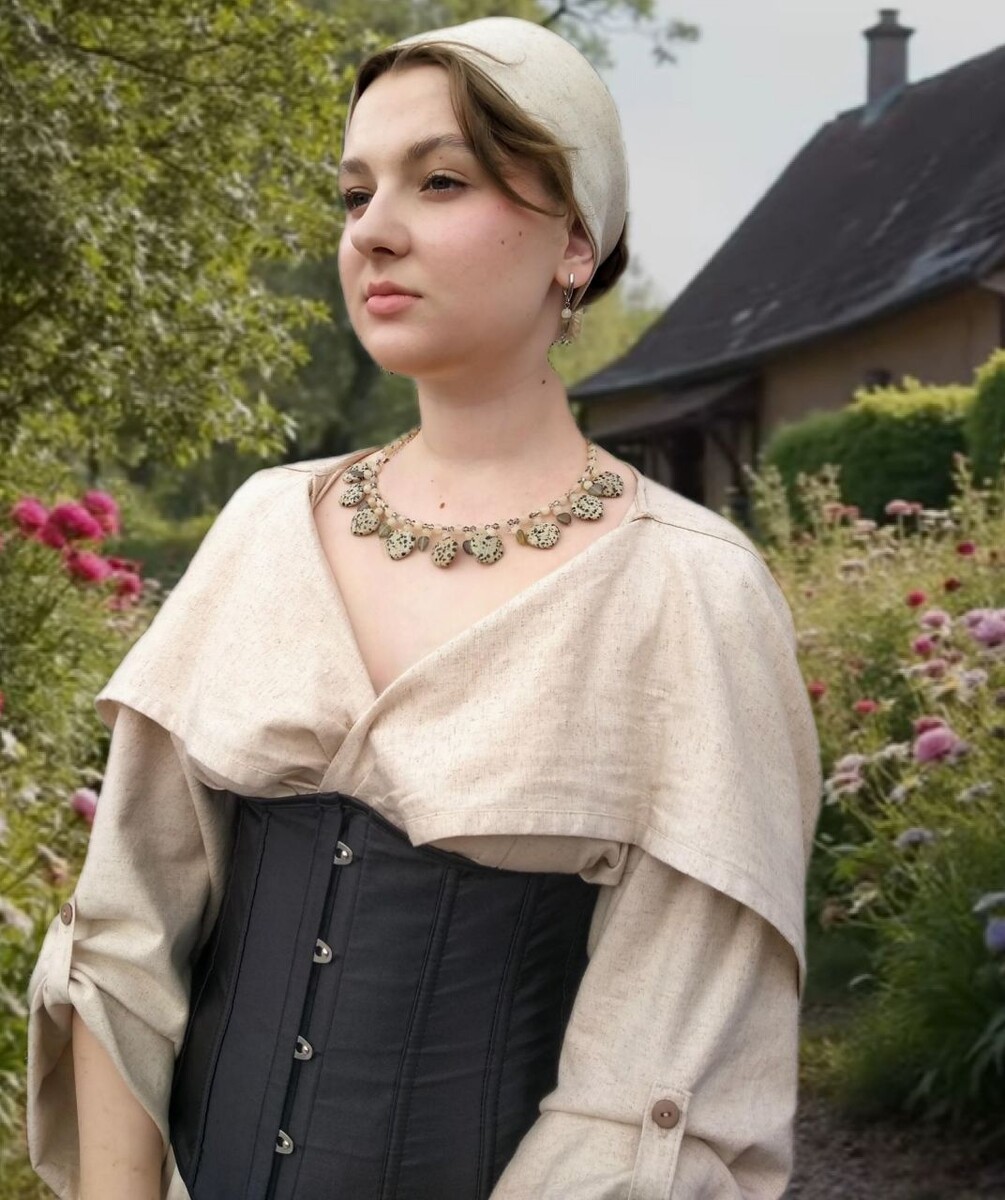 Комплект колье и серьги из яшмы - долматин, в наличии 2000р.