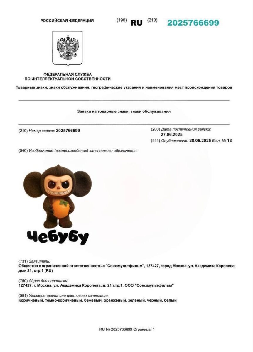 В России появится Чебубу — «Союзмультфильм» подал заявку на регистрацию товарного знака