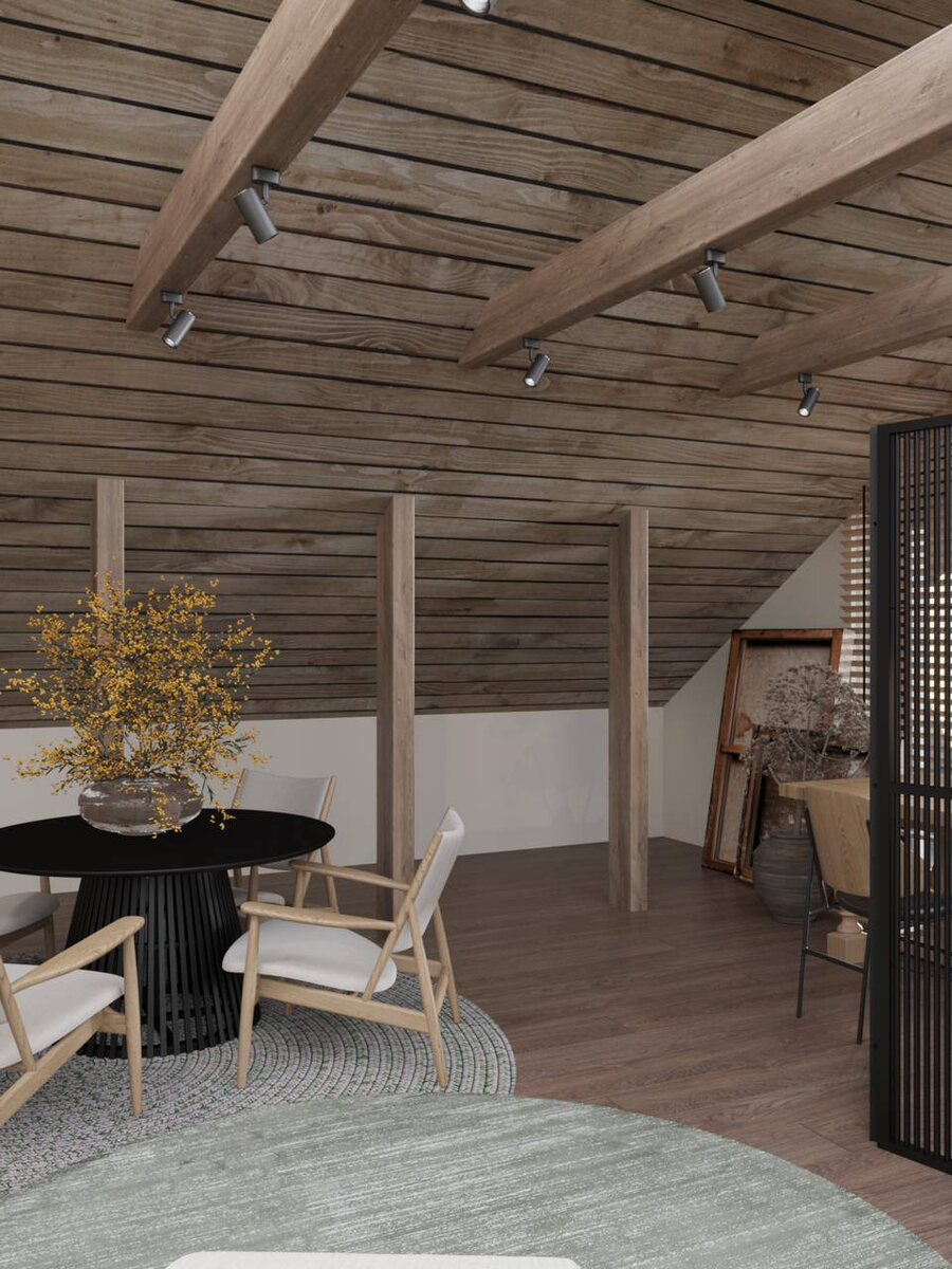 Здесь много функциональных зон и это идеальное пространство для размещения ,например 3-4 детей с няней или бабушкой ,когда их родители расположились на 1этаже