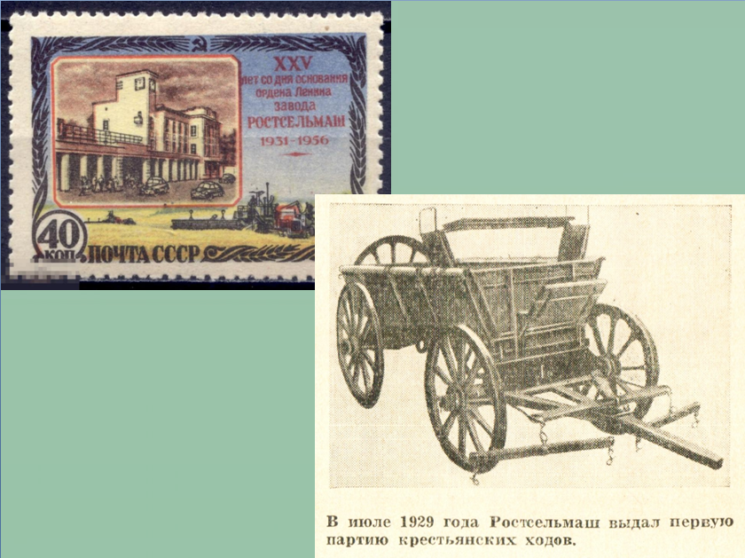Особое внимание уделялось развитию сельскохозяйственного машиностроения. В июне 1927 года Совет Труда и Обороны принял решение о строительстве крупнейшего в стране Ростовского завода сельскохозяйственных машин[8]. Ростсельмаш стал крупнейшим предприятием по производству сельхозмашин, выпустив к концу первой пятилетки продукции на 75 миллионов рублей. С 1930 по 1932 год завод произвел 25 тысяч тракторных плугов, 21 тысячу сенокосилок, 75 тысяч конных грабель и 2,5 тысячи комбайнов[9].